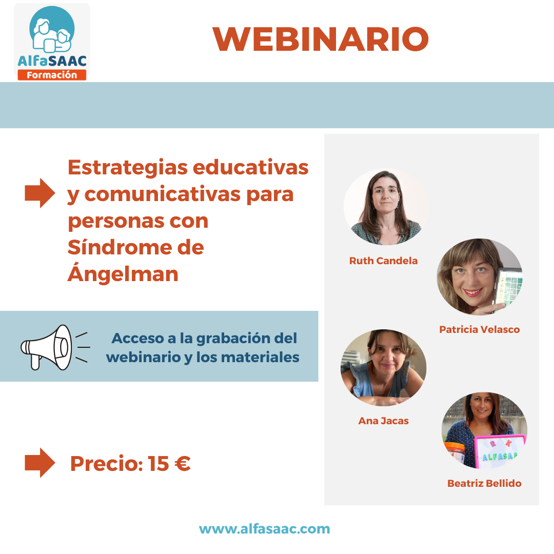 Aprovecha la oportunidad para aprender con las especialistas en CAA y Síndrome de Ángelman Ruth Candela, Patricia Velasco, Ana Jacas y Beatriz Bellido.